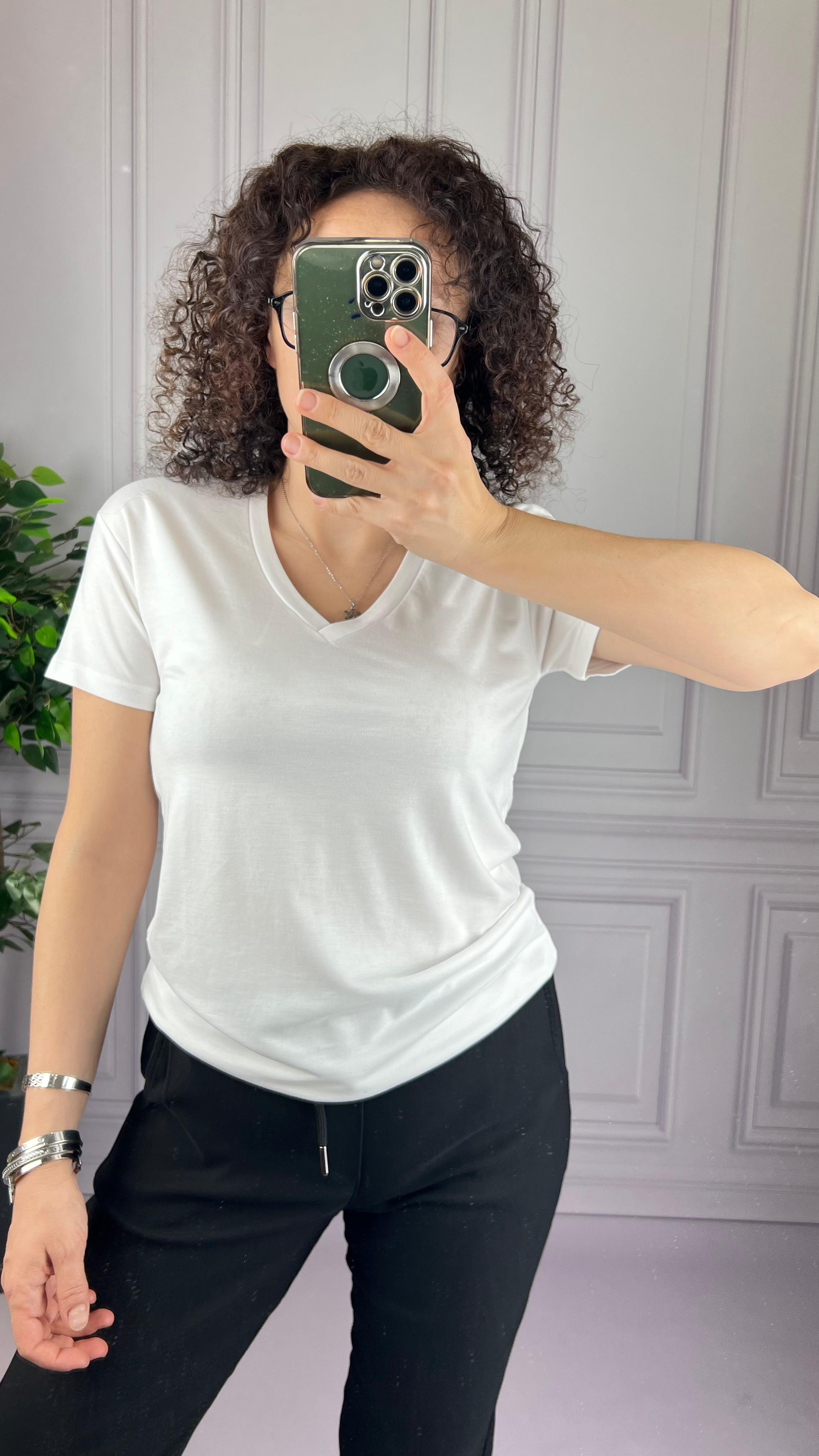 V YAKA VİSKON RAHAT KALIP TSHIRT...